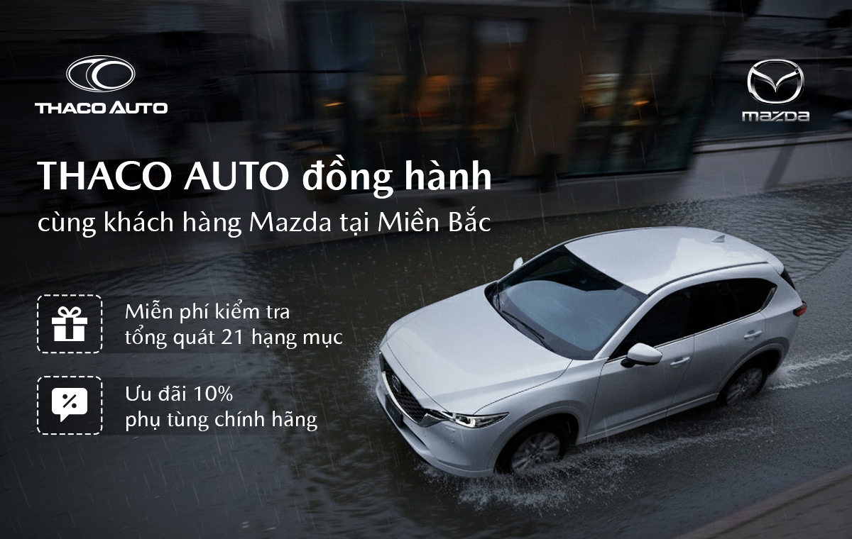 Với tinh thần tận tâm và luôn đồng hành cùng khách hàng trong mọi hoàn cảnh, THACO AUTO triển khai chương trình “Đồng hành cùng khách hàng Miền Bắc” nhằm chia sẻ và hỗ trợ sớm khắc phục hậu quả sau thiên tai dành cho khách hàng sử dụng xe Mazda.